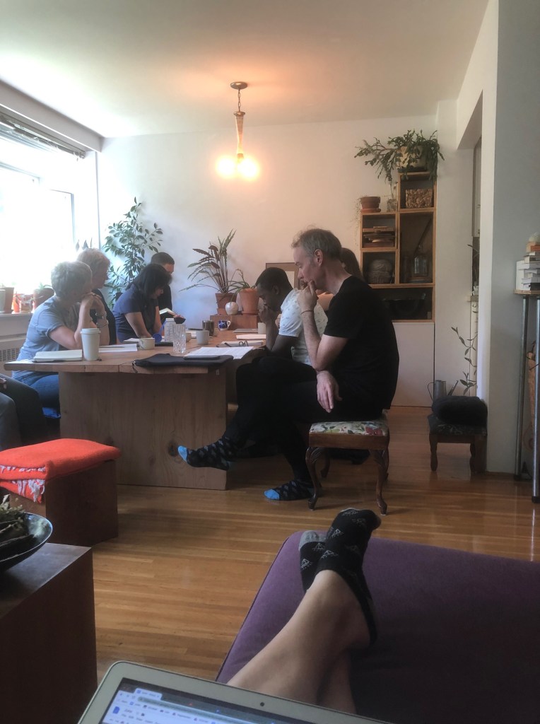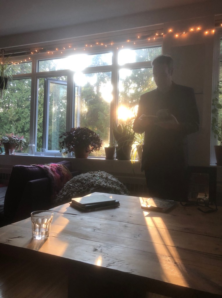 June 29th was the final day of my Mean Game tour. Day 39! I’d met Kevin Spenst a few years before in Toronto, and we’d stayed in touch. When I told him I was coming to Vancouver he rolled out a kind of poetic red carpet for me: putting me in touch with every writer he could think of, arranging an interview for me on co-op radio, and offering to host a reading and workshop at his house! I even slept on his couch that night. (Thanks also to his marvelous partner, the artist and art therapist, Shauna Kaendo, for generously sharing the space with me.)
